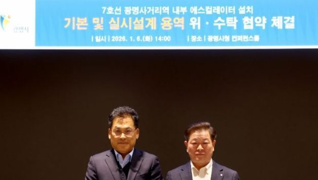 뉴스100 김동초 기자 | 광명시가 광명사거리역 내부 중앙계단에 에스컬레이터를 설치해 시민들의 지하철 이용 편의를 높인다. 시는 6일 오후 시청 컨퍼런스룸에서 서울교통공사와 ‘광명사거리역 내부 중앙계단 에스컬레이터 설치를 위한 기본 및 실시설계 용역 위수탁 협약’을 체결했다. 이번 협약에 따라 광명시는 에스컬레이터 설치 기본 및 실시설계 용역비 2억 원을 부담하고, 서울교통공사는 해당 용역을 수행한다. 서울교통공사가 올해 안으로 설계 용역을 완료하면, 광명시는 2029년 말 준공을 목표로 광명사거리역 지하 1층과 지하 2층을 연결하는 중앙계단에 폭 1.2m(1천200형) 규모의 에스컬레이터 2대(상·하행)를 설치할 계획이다. 광명사거리역은 하루 평균 4만 1천176명(2025년 기준, 서울교통공사 관리 7호선 42개 역사 중 4위)이 이용하는 광명시 핵심 교통거점으로, 출퇴근 시간대는 물론 평소에도 이용객이 많은 지하철역이다. 그러나 외부 출입구와 연결된 인도가 협소해 에스컬레이터 등 승강편의시설 설치에 제약이 있어 시민들이 이동에 불편을 겪어왔다. 현재 10개 출입구 중 에스컬레이터가 설치된 곳은