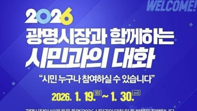 뉴스100 김동초 기자 | 박승원 광명시장이 시민주권을 시정의 중심에 두고 지속가능한 광명의 미래를 시민과 함께 완성하기 위해 현장 행보에 나선다. 광명시는 오는 19일부터 30일까지 관내 19개 동에서 순차적으로 ‘시민과의 대화’를 진행한다고 15일 밝혔다. ‘시민과의 대화’는 시민 누구나 시장과 직접 소통할 수 있는 열린 자리로, 시정 전반에 대한 운영 방향을 공유하고 생활 속 불편과 지역 현안에 대한 시민의 의견을 현장에서 듣는 광명시의 대표적인 시민 소통 행사다. 박 시장은 “모든 권력은 시민으로부터 나온다”며 “시민과의 대화를 통해 시민의 목소리를 현장에서 더 가까이 듣고, 이를 광명의 미래를 완성하는 힘으로 이어가겠다”고 밝혔다. 박 시장은 19일 오전 광명1동 방문을 시작으로 평일 1~2개 동을 방문한다. 지역 현안 관련 부서장들도 동행해 시민들과 소통하고 현장에서 제안된 민원 해결 방안을 함께 모색할 예정이다. 특히 박 시장은 시민의 삶을 지탱하는 기본사회, 지속가능한 도시로 나아가는 미래 전략을 중심으로 2026년 시정 운영 구상을 시민들에게 직접 설명한다.