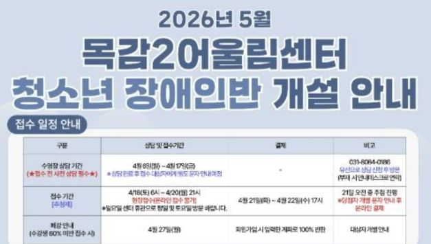 뉴스100 김동초 기자 | 시흥도시공사는 오는 5월부터 목감2어울림센터 수영장에서 장애인의 건강 증진과 체육활동 참여 기회 확대를 위한 ‘장애인 수영 프로그램’을 운영한다고 밝혔다. 이번 프로그램은 장애 아동과 청소년의 재활을 돕고 기초 체력을 증진하기 위해 기획됐으며, 개인별 장애 유형을 고려한 소규모 맞춤형 강습을 통해 지역 내 장애인 체육활동 사각지대를 해소하는 데 중점을 두었다. 프로그램 주요 내용은 다음과 같다. 대상은 시흥시 등록 장애인 초등학생 및 중·고등학생으로, 회차당 5명까지 이용할 수 있다. 운영시간은 주 2회 오후 4시 및 5시(각 50분 강습)로, 초등부는 화·목요일, 중·고등부는 월·수요일에 이용할 수 있다. 수강료는 1인 14,000원이며, 장애인 스포츠 지도자 자격을 갖춘 전문 강사를 배치하여 맞춤형 지도와 안전관리를 실시할 예정이다. 프로그램 참여 희망자는 신청 전 유선 상담과 대면 상담을 완료해야 한다. 상담 기간은 4월 6일부터 4월 17일(09:00~18:00)까지이며, 상담 완료 후 적합자로 선정되면 접수 방법을 별도로 안내할 예정이다. 프로그램 접수는 4월 1