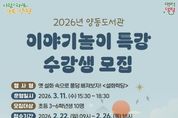 뉴스100 김동초 기자 | 양평군은 새 학기를 맞아 양동도서관에서 초등학생을 대상으로 운영하는 ‘이야기 놀이 특강’의 수강생을 오는 22일부터 26일까지 모집한다고 밝혔다. 이번 특강은 옛 설화 속 주인공이 되어 또래와 협력해 이야기를 만들어 보는 스토리텔링 프로그램이다. 시나리오 속에서 나만의 캐릭터를 만들고 싶은 초등학교 3~6학년 학생이라면 누구나 신청할 수 있다. 강좌는 3월 11일 오후 3시 30분부터 약 3시간 동안 참여형 프로그램으로 진행되며, 장소는 양동도서관 3층 강의실이다. 전진선 양평군수는 “앞으로 양동도서관이 어린이들에게 다양한 독서문화 프로그램을 제공하고, 이번 특강이 초등학생들의 문해력 향상에 도움이 되기를 바란다”고 전했다. [뉴스출처 : 경기도 양평군]
