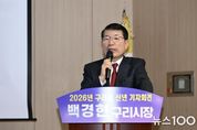 뉴스100 김동초 기자 | 구리시는 28일 오전 11시 10분, 구리시 여성행복센터 대강당에서 2026년 새해를 맞아 신년 기자회견을 열고, 그간의 시정 운영 성과를 돌아보며 올해 시정 운영 방향을 발표했다. 백경현 시장은 인사말에서 “지난 한 해 구리시는 어려운 여건 속에서도 말이 아닌 성과로, 계획이 아닌 실행으로 시민의 삶에 변화를 만들어 왔다”라며 “2026년에는 그 변화의 흐름을 이어 시민의 일상 곳곳에서 체감할 수 있는 성과로 완성해 나가겠다”라고 밝혔다. 말이 아닌 실행으로 증명된 변화 백 시장은 지난해 말 구리토평한강 공공주택지구 지정 완료를 주요 성과로 언급하며 “단순한 주거 공급을 넘어 직·주·락이 어우러진 구리시 미래 100년의 출발점”이라고 말했다. 이어 인창천 생태하천 복원사업이 지난해 말 본격 착공에 들어간 점을 짚으며 “도심 속 자연과 휴식 공간을 회복하는 전환점이 될 것”이라고 강조했다. 또한 토평교 하부 갤러리 조성과 대형마트 재개장을 통해 유휴 공간을 문화공간으로 전환하고, 주민 생활 불편 해소와 지역 상권 회복의 계기를 마련했다고 설명했다. 이와 함께