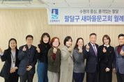 뉴스100 김동초 기자 | 수원시 팔달구 새마을문고회는 지난 8일, 황규돈 신임 팔달구청장과 함께 월례회의를 개최하며 새해 첫 출발을 알렸다. 이번 행사는 신임 구청장 취임 이후 새마을문고회와 처음으로 마련된 공식 만남으로, 지역 독서문화 활성화와 주민 공동체 발전을 위한 소통의 시간을 갖기 위해 추진됐다. 이날 월례회의에는 황규돈 팔달구청장과 함께 새마을문고회 회원들과 인사를 나누고, 2026년도 문고회 운영 방향과 주요 사업 계획을 공유했다. 또한 문고 운영 현장의 애로사항과 건의사항을 청취하며 자유로운 의견 교환이 이루어졌다. 이어 진행된 간담회에서는 보다 편안한 분위기 속에서 현장의 다양한 의견을 나누는 시간을 가졌다. 김정희 팔달구 새마을문고회 회장은 “신임 구청장과의 첫 월례회의를 통해 문고회의 역할과 향후 협력 방향을 공유할 수 있는 뜻깊은 시간이었다”며 “앞으로도 지역사회와 함께하는 독서문화 조성에 최선을 다하겠다”고 말했다. 황규돈 팔달구청장은 “지역 곳곳에서 독서문화 확산과 공동체 활성화를 위해 꾸준히 활동해 온 새마을문고회의 노고에 깊이 감사드린다”며 “앞으로도 현장의 의견을 바