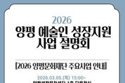 뉴스100 김동초 기자 | 양평문화재단은 오는 3월 5일, 양평생활문화센터 1층 다목적실에서 지역 예술인의 지속 가능한 활동을 지원하기 위한 ‘2026 예술인 성장지원사업 설명회’를 개최한다고 밝혔다. 이번 사업은 지역 내 신진·청년 예술인을 중심으로 창작 역량에 비해 부족했던 성장 기회를 제공하고, 기존 지원사업을 일회성 지원으로 그치지 않고 지속적인 지원 체계를 구축하기 위해 마련됐다. 재단은 예술인 스스로 활동할 수 있는 환경을 만들고 지역 예술 생태계를 활성화하는 것을 목표로 하고 있다. 설명회는 크게 세 가지 내용으로 구성된다. 첫째, 2026년 진행 예정인 공모 지원사업 계획을 공유한다. 양평문화재단의 주요 사업인 ‘모든예술31’, ‘물맑은 어울림 음악회’, ‘생활문화지원사업’은 물론 외부 기관의 공모사업 정보도 함께 제공될 예정이다. 둘째, 예술인을 위한 행정 실무 교육이 진행된다. 공모사업의 구조와 신청 절차, 사업계획서 작성 방법, 정산 시 유의사항 등 현장에서 필요한 실무 중심 교육을 통해 예술인의 행정 부담을 완화할 것으로 기대된다. 셋째, 향후 예술인 지원 확대를