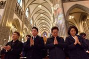 뉴스100 김동초 기자 | 이재명 대통령과 김혜경 여사가 25일 서울 중구 명동대성당에서 열린 성탄 대축일 미사에서 기도를 하고 있다. [뉴스출처 : 대통령실]