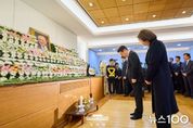 뉴스100 김동초 기자 | 이재명 대통령과 김혜경 여사가 1월 27일 서울 종로구 서울대병원 장례식장에 마련된 고 이해찬 전 총리 빈소를 찾아 영정을 향해 묵념하고 있다. [뉴스출처 : 청와대]