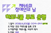 뉴스100 김동초 기자 | 사진설명: 장애인의 날 하모니콜 무료 운행 안내 포스터.(사진=안산도시공사 제공) 안산도시공사(사장 직무대행 김철연)는 오는 4월 20일 ‘제46회 장애인의 날’을 맞아 교통약자를 위한 특별교통수단인 하모니콜과 바우처택시를 하루 동안 무료 운행한다고 16일 밝혔다. 안산도시공사는 하모니콜(60대)과 바우처택시(80대) 등 총 140대의 특별교통수단을 운영하며 ▲대중교통 이용이 어려운 장애인 ▲임신부 ▲5세 미만 아동을 동반한 보호자 ▲65세 이상 고령자 중 혼자 대중교통 이용이 어려운 교통약자에게 이동 편의를 지원하고 있다. 이번 무료 운행은 교통약자의 이동권 보장과 사회참여 확대를 위해 마련된 것으로, 장애인의 날 당일 하모니콜과 바우처택시를 이용하는 모든 고객은 요금 없이 차량을 이용할 수 있다. 이용을 희망하는 고객은 사전에 하모니콜 이용 등록을 완료해야 하며, 경기도광역이동지원시스템 대표전화(1666-0420) 또는 모바일 앱을 통해 예약할 수 있다. 정선희 안산도시공사 교통지원부장은 “교통약자의 이동권 보장은 공공기관의 중요한 역할”이라며 “장애인의 날을 맞아 더 많은 시민이 편리하게 이동 서비스를 이용할 수 있도록 적극