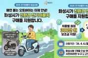 뉴스100 김동초 기자 | 화성특례시가 온실가스 감축과 대기환경 개선을 위해 2026년도 상반기 전기 이륜차 보급 사업 신청자 모집을 한다고 25일 밝혔다. 이 사업은 전기 이륜차 구매 시 비용 일부를 보조하는 사업이다. 시는 올해 상반기 전기 이륜차 총 70대(일반 48대, 우선 보급 7대, 배달용 15대)를 우선 지원할 계획이다. 보조금 지원 대상은 신청 접수일 기준 화성시에 연속하여 1개월 이상 주소를 둔 만 16세 이상 시민, 법인, 기업, 공공기관 등이다. 차량 구매 시 최대 지원액은 차종에 따라 대형 300만 원, 중형 270만 원, 소형 230만 원, 경형 140만 원, 공유형 160만 원 등으로 차등 지급된다. 특히 내연기관 이륜차를 폐차하고 전기 이륜차를 구매하거나 소상공인, 취약계층, 농업인, 배달 사용 목적으로 구매할 경우 별도의 추가 보조금을 지원받을 수 있다. 신청을 희망하는 시민은 무공해차 통합누리집에서 차종별 보조금액을 확인한 후, 전기 이륜차 판매점을 방문해 구매 계약을 체결하고 해당 영업 지점을 이용해 온라인으로 신청하면 된다. 접수 기간은 4월 6일 오전 10시부터