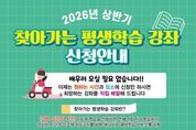 뉴스100 김동초 기자 | 안성시는 시민이 원하는 시간과 장소에서 희망하는 강좌를 수강할 수 있는 '2026년 상반기 찾아가는 평생학습 강좌'를 운영한다고 밝혔다. ‘찾아가는 평생학습 강좌’는 10명 이상의 시민이 학습동아리를 만들어 강좌를 신청하면, 강사가 직접 현장을 방문하여 교육을 진행하는 수요자 중심의 평생학습 프로그램이다. 신청 가능한 강좌 분야는 인문교양, 문화예술, 직업능력 등 다양하며, 다만 평생학습장터, 주민자치센터, 보건소, 경로당, 농업기술센터 등 타 부서에서 지원받는 동일·유사 프로그램은 중복 신청할 수 없다. 학습동아리는 강좌당 최대 24시간 범위 내에서 운영할 수 있으며, 강사비는 안성시에서 지원하고 재료비 등은 학습자가 부담한다. 신청기간은 4월 2일부터 4월 9일까지이며, 총 15개 강좌를 선착순으로 접수한다. 신청 대상은 안성시에 주소를 둔 10명 이상의 학습동아리이다. 신청은 안성배움e 홈페이지를 통해 온라인으로 가능하며, 안성배움e 홈페이지 → 평생교육사업 → 찾아가는 평생학습 강좌 → 평생학습 강좌 운영방법 → 신청서 다운로드 및 작성 → 신청서 업