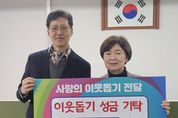 뉴스100 김동초 기자 | 평택시 팽성읍 주민 최희순 님이 어려운 이웃을 위한 따뜻한 나눔을 실천했다. 최희순 님은 지난 22일, 경제적 어려움을 겪고 있는 관내 취약계층을 돕기 위해 성금 100만 원을 팽성읍 행정복지센터에 전달했다. 최희순 님은 평소 지역사회에 대한 깊은 애정을 바탕으로 나눔과 봉사를 꾸준히 실천하고 있으며, 수년간 지속적인 성금 기부를 통해 이웃사랑을 몸소 보여주고 있다. 특히 영남 지역 산불 피해가 발생했을 당시에는 피해 복구와 이재민 지원을 위해 500만 원을 기부하는 등 어려운 이웃을 위한 따뜻한 나눔을 실천해 주민들로부터 모범이 되고 있다. 최희순 님은 “작은 정성이지만 도움이 필요한 이웃들에게 따뜻한 위로가 되길 바란다”라며, 앞으로도 지역사회를 위한 나눔을 지속해 나가고 싶다고 전했다. 이에 이근영 팽성읍장은 “이웃을 생각하는 소중한 마음이 담긴 기부에 깊이 감사드린다”라며 “기부하신 성금은 도움이 절실한 분들께 정성껏 전달하겠다”라고 말했다. 한편, 이번에 전달된 성금은 평택행복나눔본부를 통해 장애인 가구 등 지역 내 취약계층에 지원될 예정이다. [뉴스출처 :