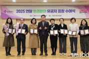 뉴스100 김동초 기자 | 용인특례시는 지난달 30일 시청 비전홀에서 ‘2025년 연말 환경분야 유공 표창 수여식’을 열었다고 1일 밝혔다. 이 자리에서는 ▲생태계 보전 ▲환경교육 ▲수질보호 ▲탄소중립 ▲대기보전 ▲환경미화 ▲재활용가능자원 ▲화학물질 안전관리 등 8개 환경분야 유공자 58명에게 표창이 전달됐다. 행사에 참석한 이상일 시장은 각자의 분야에서 묵묵히 일하고 있는 수상자들에게 감사의 뜻을 전했다. 이상일 시장은 “지역 곳곳에서 활발하게 활동해 주시는 여러분 덕분에 더욱 친환경적이고 지속가능한 도시로 발전하고 있다”며 “여러분의 선한 영향력으로 더 많은 시민들이 환경에 관심을 가지고 동참해주시면 좋겠다”고 말했다. [뉴스출처 : 경기도용인시]