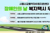 뉴스100 김동초 기자 | 시흥도시공사는 오는 4월 20일 ‘제46회 장애인의 날’을 맞아 교통약자의 이동 편의 증진과 사회참여 확대를 위해 무료 운행 서비스를 제공한다고 밝혔다. 이번 무료 운행은 대중교통 이용에 어려움을 겪는 교통약자들의 실질적인 이동권을 보장하고 복지 향상을 위해 마련됐다. 복지택시 ‘희망네바퀴’(휠체어 차량)와 ‘바우처 택시’를 통해 서비스를 진행하며, 대상자는 센터에 등록된 장애인 이용객이다. 이용객은 당일 1인당 최대 편도 4회까지 무료로 차량을 이용할 수 있어 경제적 부담을 줄이고 이동편의성을 높였다. 차량별 운행 시간은 ‘바우처택시’의 경우 6시부터 18시까지이고, ‘희망네바퀴’(휠체어 차량)는 24시간 상시 운영하여 이용자의 개별 일정과 상황에 맞춘 유연한 이동을 지원한다. 공사는 이번 무료 운행을 통해 장애인들의 경제적 부담을 완화하고 실질적인 이동권을 보장하는 등 이용자 중심의 교통행정을 적극적으로 실천할 계획이다. 유병욱 사장은 “장애인의 날을 맞아 시행하는 이번 무료 운행이 교통약자의 이동권 보장과 사회참여에 실질적인 도움이 되길 바란다”라며, “앞으로도 이용